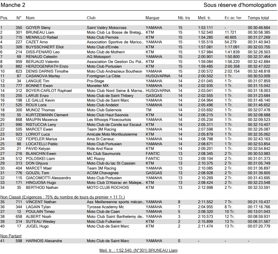 Sleny Goyer had the perfect day racing in front of his home fans going 1-1 on his MJC Yamaha. Liam Bruneau was also solid going 2-2.