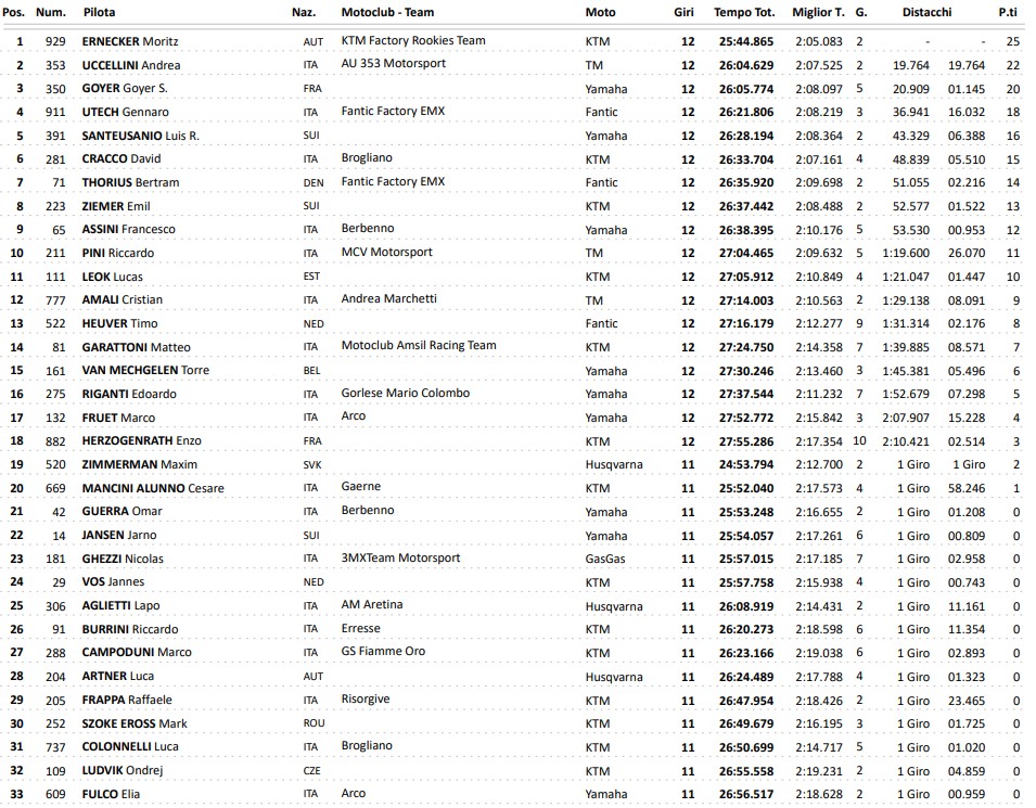 Race One: Moritz Ernecker took the win in the first race from Andrea Uccellini who is showing good pace on his TM. Sleny Goyer finished third on his MJC Yamaha in what is his first pre-season race of the season.