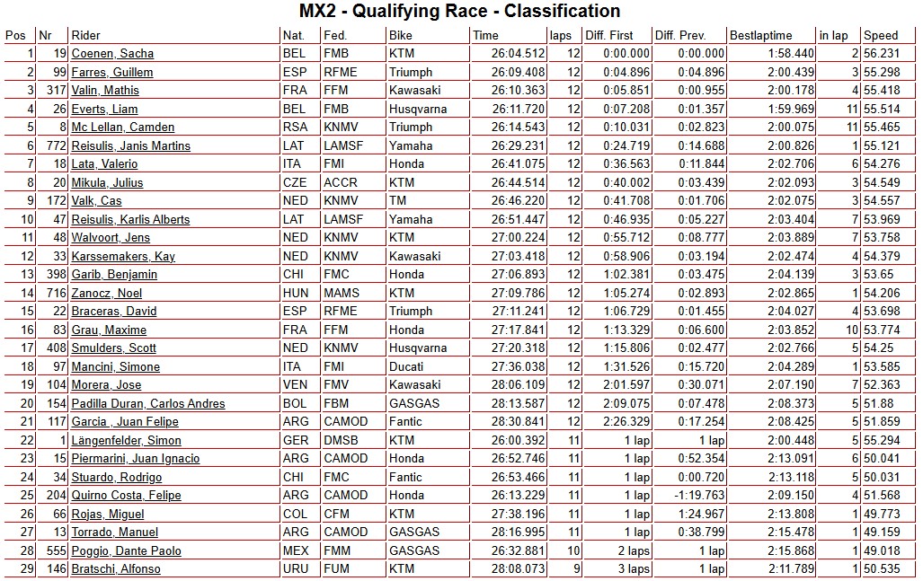 MX2 Qualifying Race: