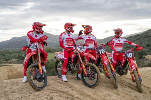 The four-rider Honda HRC contingent of Tim Gajser, Ruben Fernandez,…
