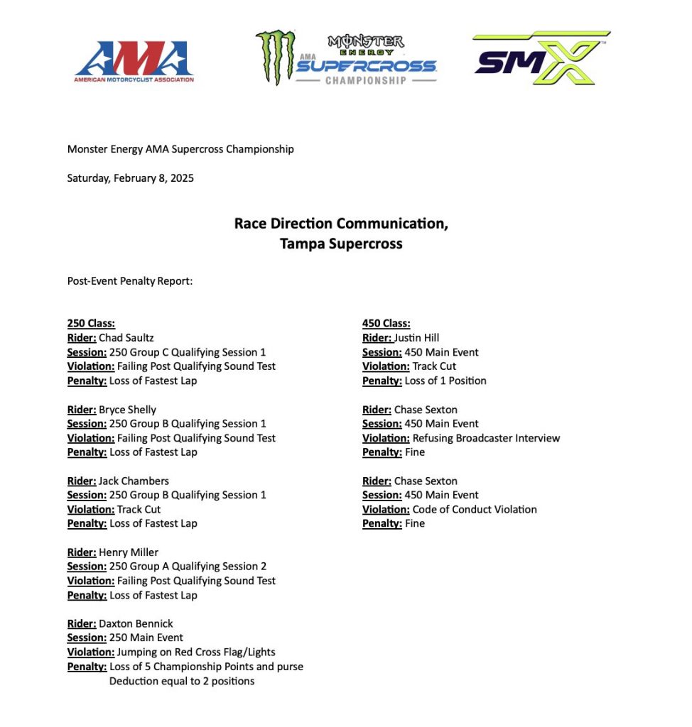 After a tough race for Chase Sexton in Tampa that saw him crash out of the lead and salvage fifth with a banged up bike, it has emerged that, to add insult to injury, the KTM rider was fined for (understandably) refusing to do a TV broadcast interview!