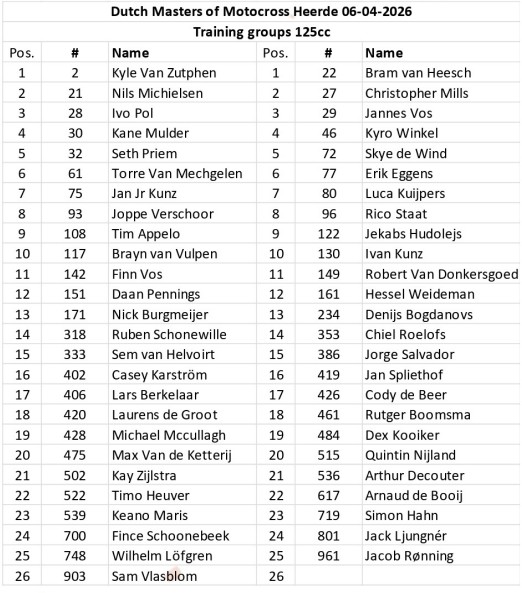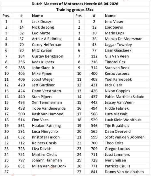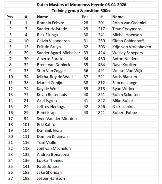 NetherlandsEntry list: Dutch Masters RD1 – Heerde Andy McKinstry1 minute ago1 minute ago1 mins Image: Full Spectrum Facebook Twitter WhatsApp Messenger Email The Dutch Masters kicks off this weekend and the entry lists are stacked for the opening round of the series. There’s plenty of Grand Prix and EMX riders that will line up at the superb sandy track. MX1:Â This article continues below MX2:Â 125cc:Â 85cc:Â Post navigation Previous: Video: First laps at St. Louis Supercross