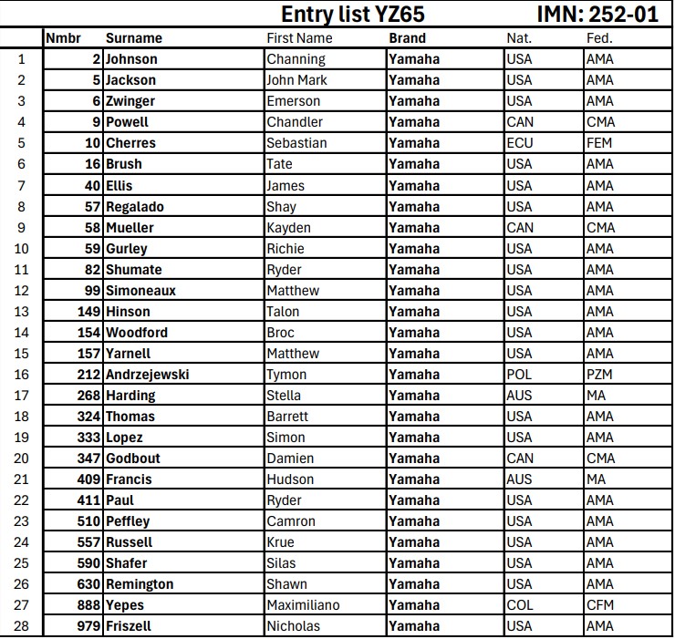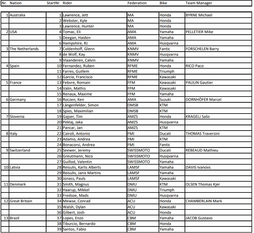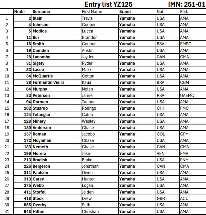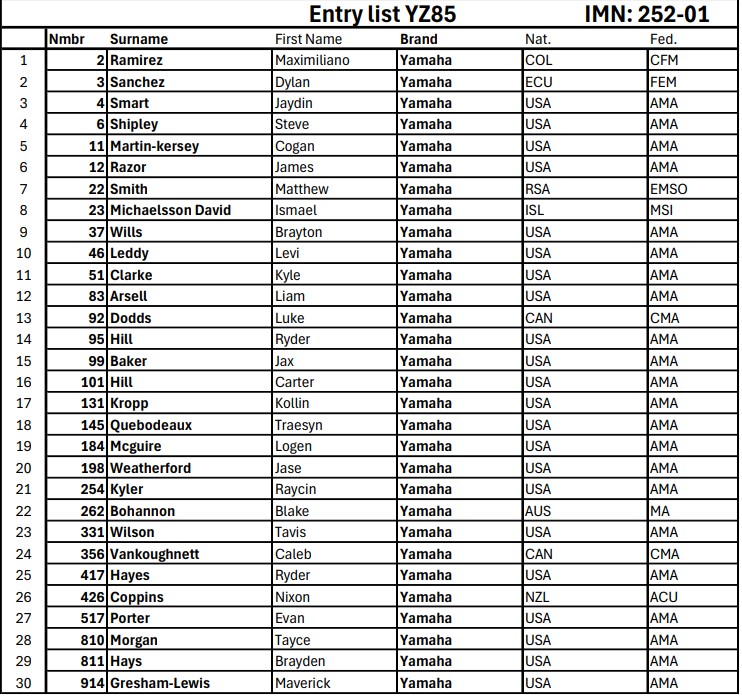 MXGP + EMXEntry list: Ironman MXoN – MXoN + BluCru classes Andy McKinstry19 seconds ago1 mins Image: MXGP/Infront Moto Racing Facebook Twitter WhatsApp Messenger Email It’s all systems go for the MXoN which heads to Ironman, USA this weekend. Find out who will race for which Nation this weekend as well as BluCru classes. MXoN: This article continues below BLUCru 125cc: BluCru 85cc: BluCru 65cc: Post navigation Previous: Who can handle the MXoN heat at Ironman?