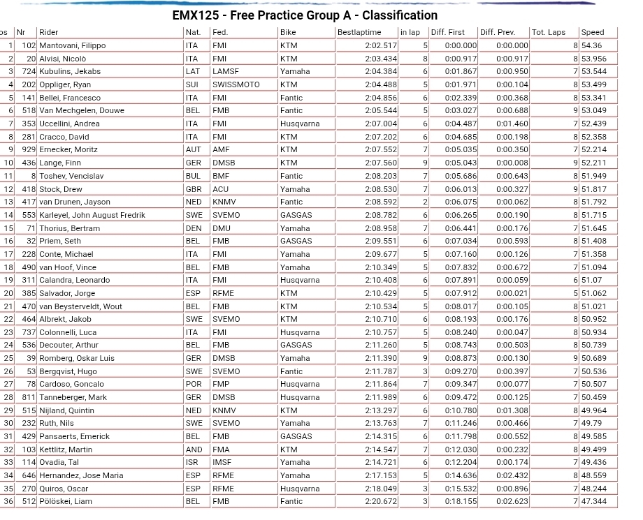 In EMX125 it was Filippo Mantovani quickest in Group A with Dani Heitink quickest in group B.