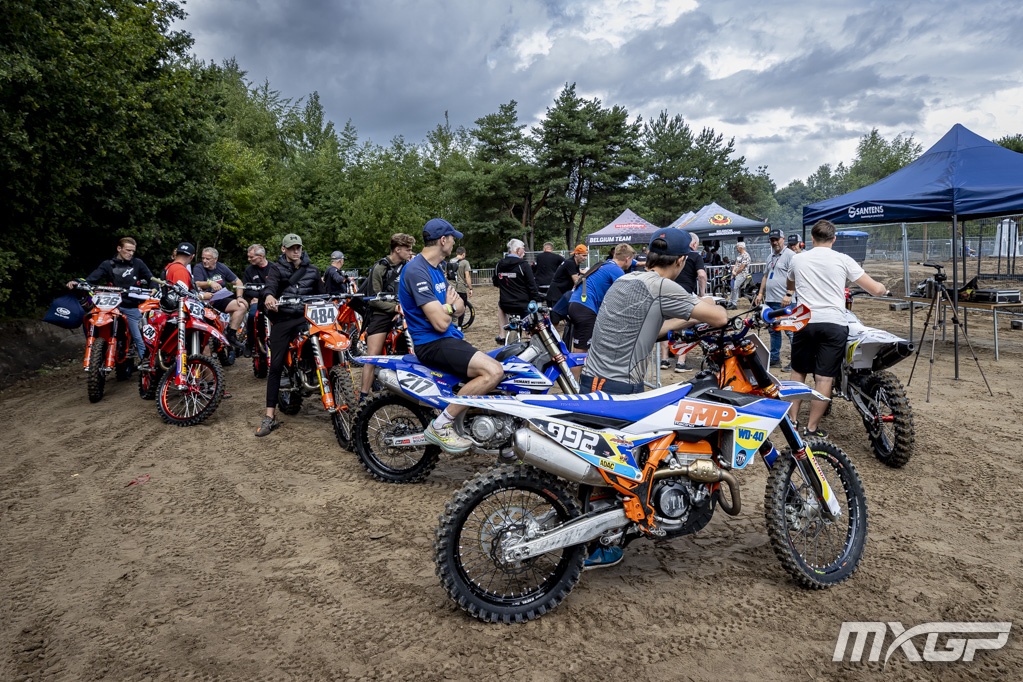 Mairis Pumpers and Sven Van der Mierden topped their respective groups in EMX Open in first practice at Lommel – the flattest the track will be all weekend!