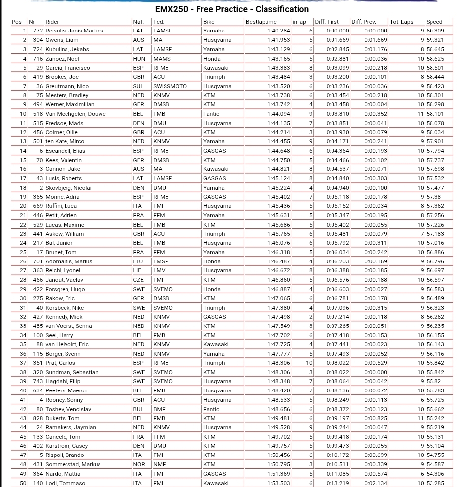 Results: AMA + MXGPFree practice results: EMX250 RD12 – Arnhem Jonathan McCready2 weeks ago2 weeks ago1 mins Image: Kevin Frelaud Facebook Twitter WhatsApp Messenger Email Janis Reisulis set the early pace at Arnhem in EMX250 from Liam Owens! EMX250 Post navigation Previous: Jett Lawrence slick response to Deegan fan taunt!Next: Free practice results: MX2 + MXGP RD17 – Arnhem