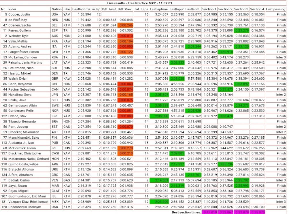 Justin Cooper set a rapid pace despite just stepping into the MX2 slot for team USA this week as he went fastest over Kay de Wolf and Sacha Coenen.