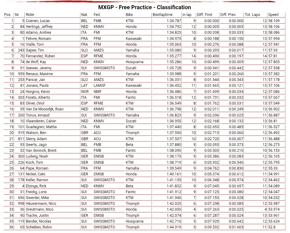 The Coenen brothers set the pace in free practice in Switzerland with Jeffrey Herlings second quickest to Lucas in MXGP by just 100th of a second, as the duo look to be showing themselves to be the fastest riders in a stacked class so far this season.