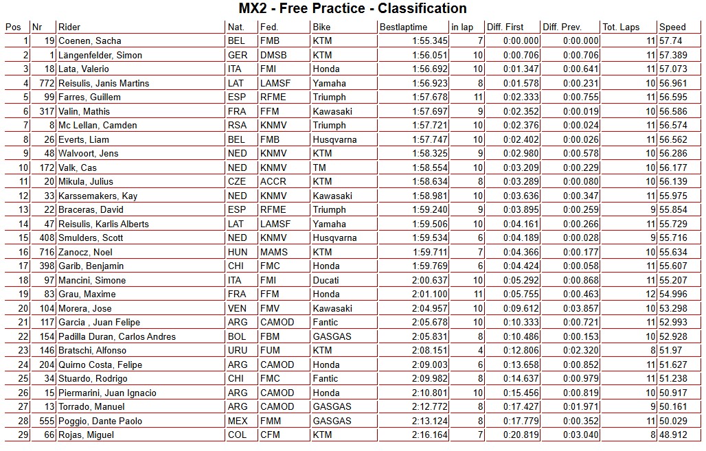 In MX2, Sacha Coenen was fastest and was the only rider in the 1:55’s. Reigning champion, Simon Längenfelder was second fastest in a KTM 1-2.