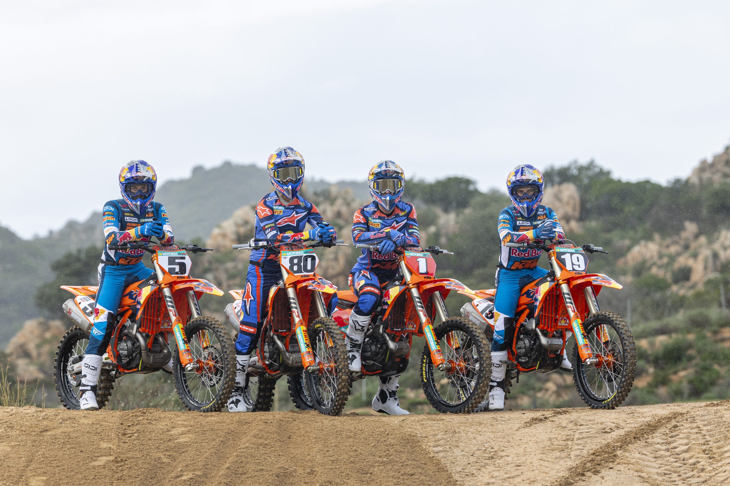 Four riders and two KTM 450 SX-Fs and two KTM 250 SX-Fs will form the factory roster in the 2026 MXGP and MX2 classes of the world championship this year: a contest that starts on 7-8 of March in Bariloche, Argentina and runs for a total of 20 events through 18 countries until 19-20 September in Australia.