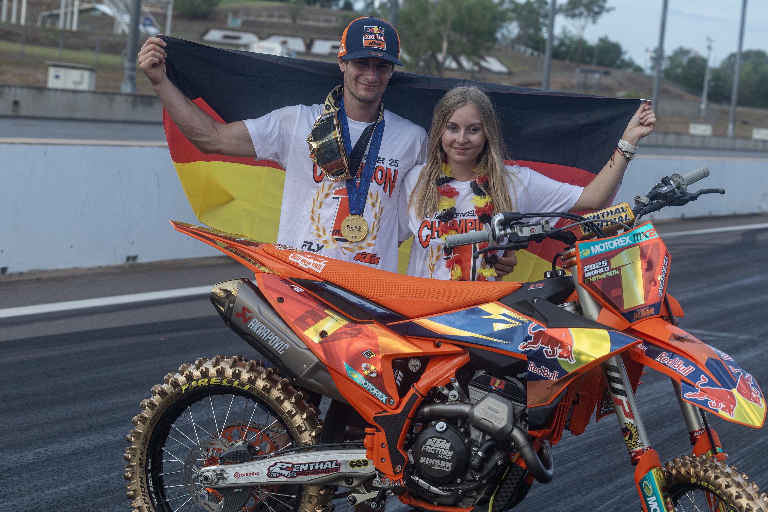 As Simon Längenfelder stormed to his first MX2 World Championship title in 2025, one person experienced every twist, triumph, and nerve-shredding moment right alongside him – his longtime partner, Malin Schmidt. Far more than simply a familiar face in the paddock, Malin plays a vital role behind the scenes, supporting Simon through the intensity of world championship racing while juggling her own passion for motocross.