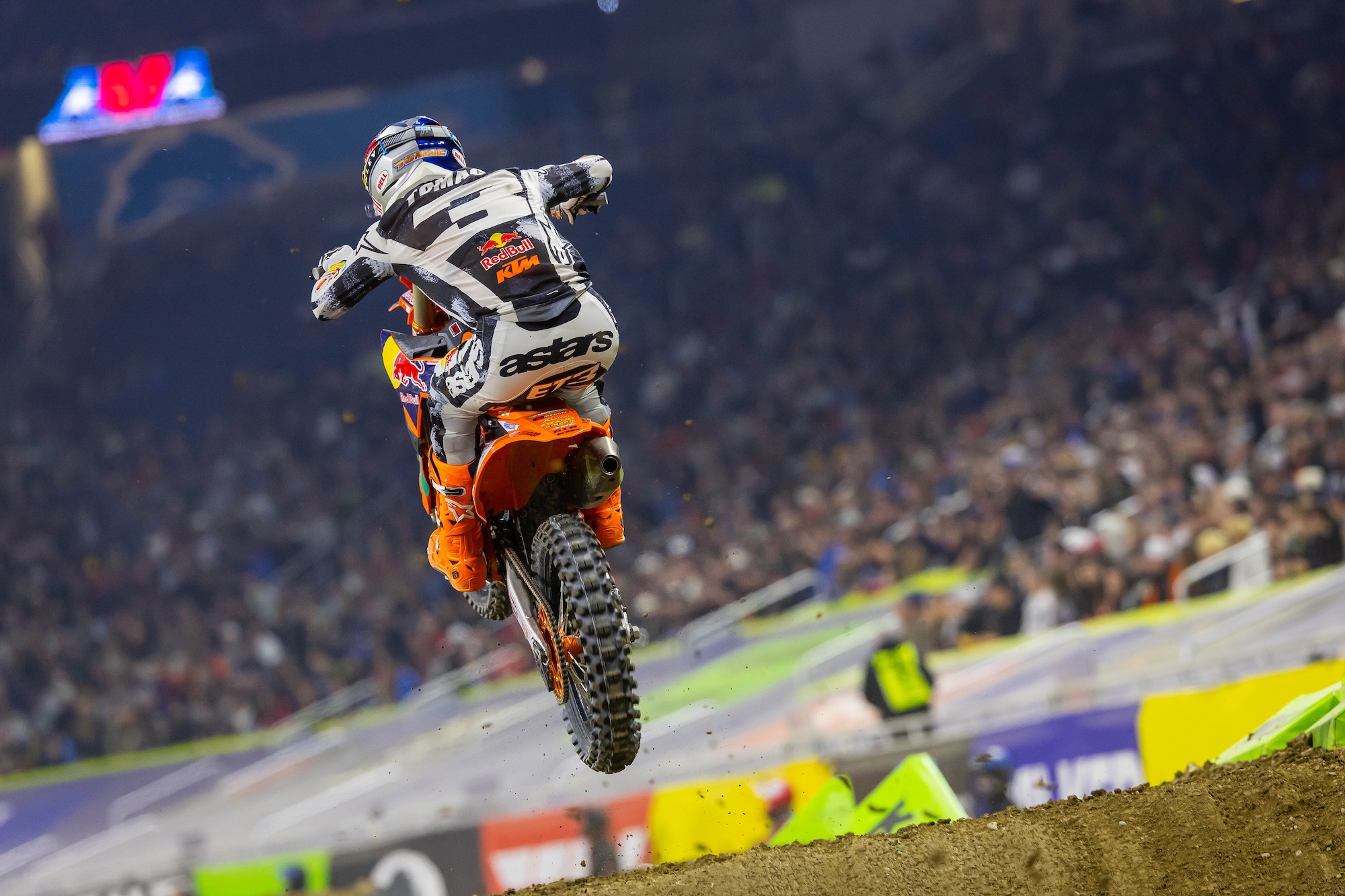 Tomac has been cleared of any broken bones upon further evaluation this week, however, the two-time 450SX Champion is still broadly feeling the effects of the impact at this time. He is now focusing on his recovery, with the intention of potentially returning for the final rounds of Supercross onboard the KTM 450 SX-F FACTORY EDITION.
