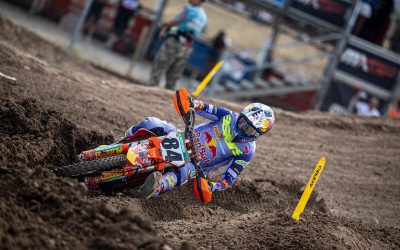 I have no idea! It had that BMX-style start thing so I think it really came down to technique and it also wasn’t ripped deep like in the GPs. Those KTMs, they have more over-rev so it doesn’t bog down as much. But yeah, a holeshot in the quali race yesterday and the first moto today was not so bad, the second one was a bit average but I’m stoked, I am coming away with a smile on my face.