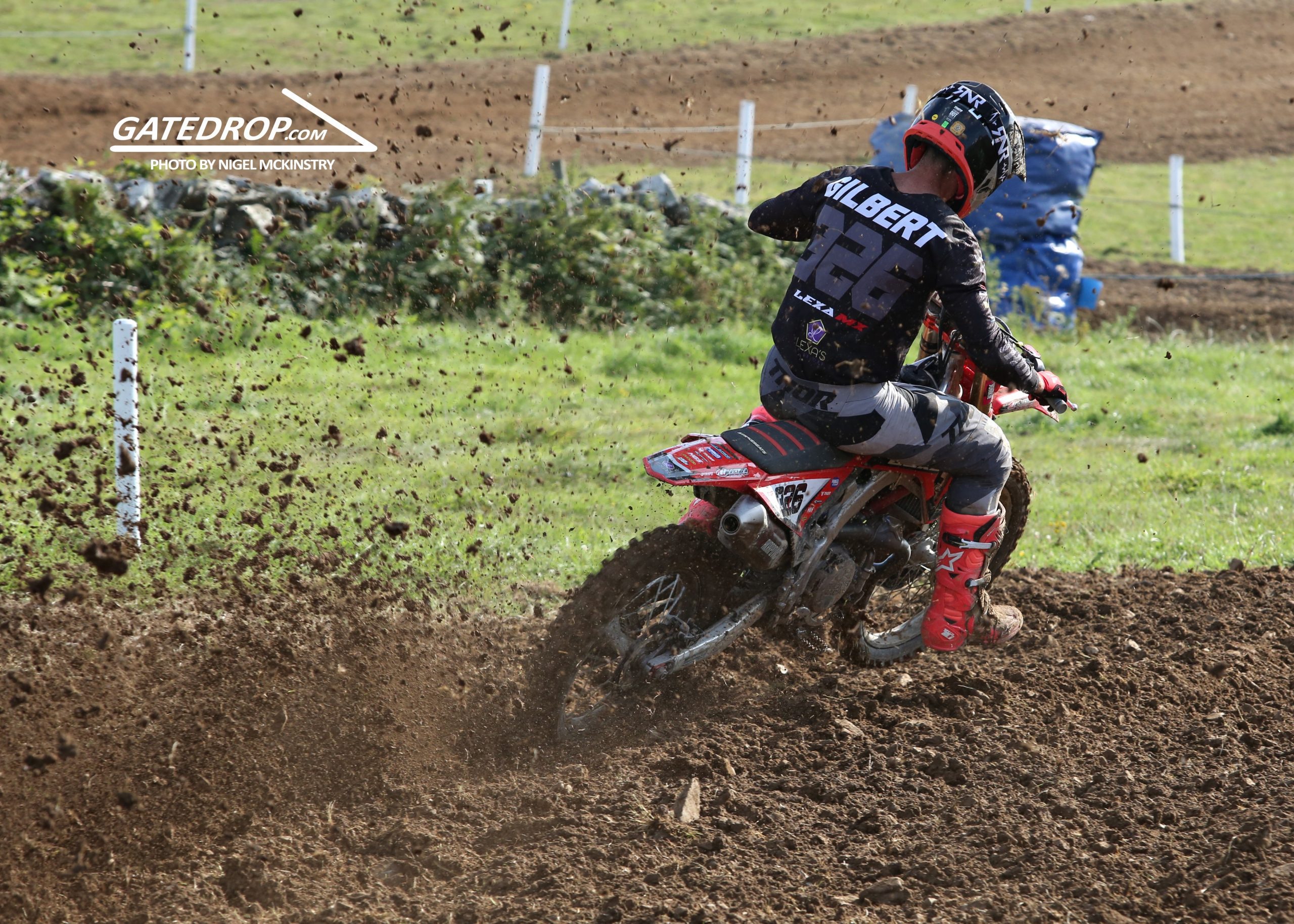 Gilbert: I don’t know if it was because it’s been so dry but the stones came up through a lot more so it actually made the track feel really slippery, there wasn’t a lot of grip apart from the main line. To try and pass it was really difficult because the main line you could literally just go in and just hold the throttle wide and just use the berms whereas if we had a little bit more moisture I think there would have been maybe a bit more dirt to hold the stones together and it wouldn’t push around so much. But even at Landrake for the British, they’ve got all the facilities and they still struggled to get the water down and it’s just the dry weather that we’ve had lately. I saw yesterday when I turned up at how much effort they were putting in so it’s not for the lack of effort. It’s just been dry and that’s it basically.