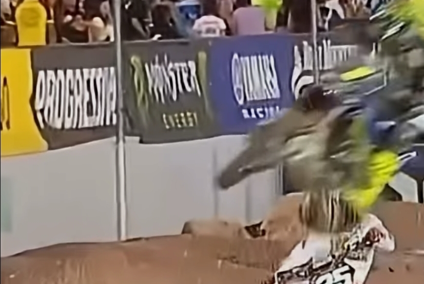 Jordon Smith somehow still raced the final SMX race of the season in Vegas after a crazy crash in practice that left him with a dislocated shoulder!