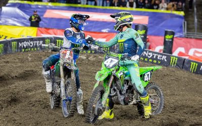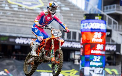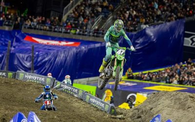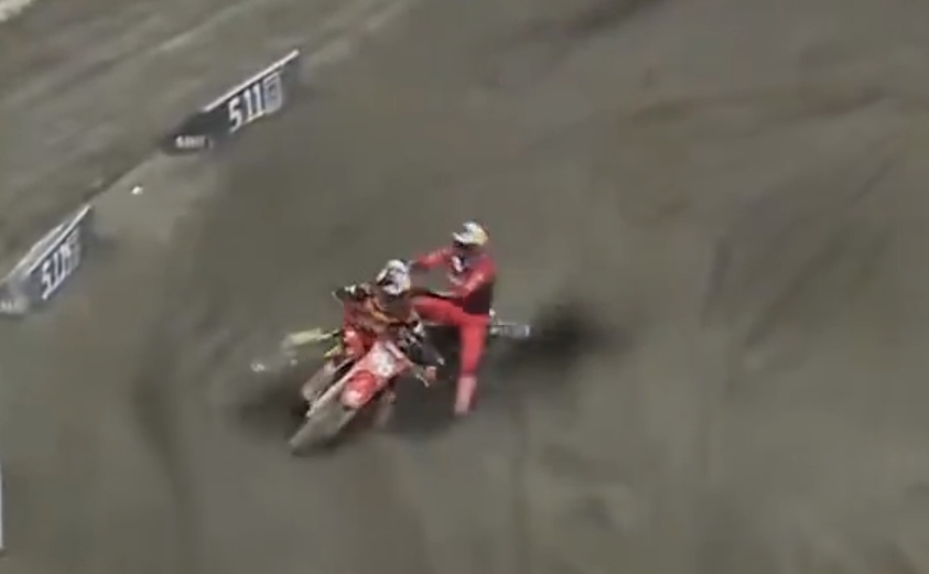 This time it wasn’t a backmarker like Tampa last year, it was the championship leader, Hunter Lawrence, who miscalculated a passing opportunity in Seattlw and jumped into the side of Roczen, taking them both out!