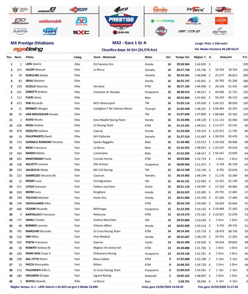 Alessandro Lupino took the win in MX1 with Valerio Lata winning MX2 but only one moto was ran due to poor weather!