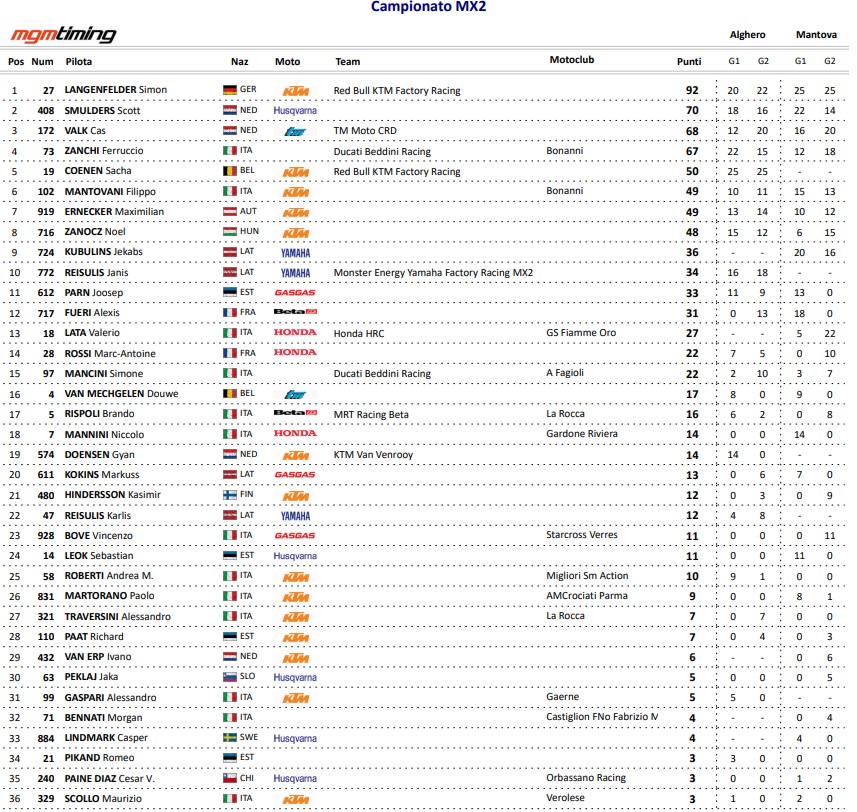 Kubulins had a crash which dropped him down to fifth but it was still enough to get on the podium. Längenfelder took his time to come through the pack, he was sixth on the first lap and by the time he got into second he had over a ten second gap to make up to Lata. But that’s exactly what he did gaining and catching Lata before making a move stick – impressive and a lovely style to watch.
