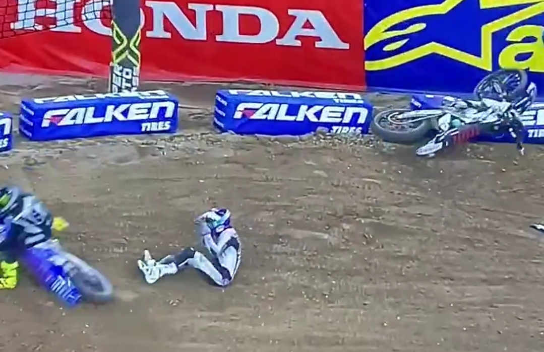 After a horrible crash, it is not a surprise to learn that Preston Boespflug suffered a broken femur when you see the video footage but he also revealed that he also dislocated his knee, in a painful end to his supercross season, again underlining just how brutal the sport really is with one mistake.