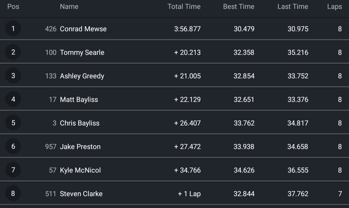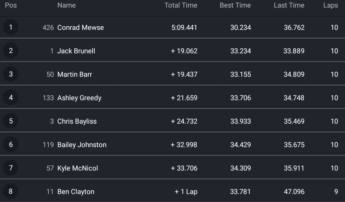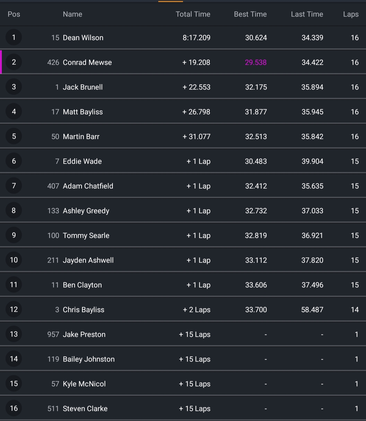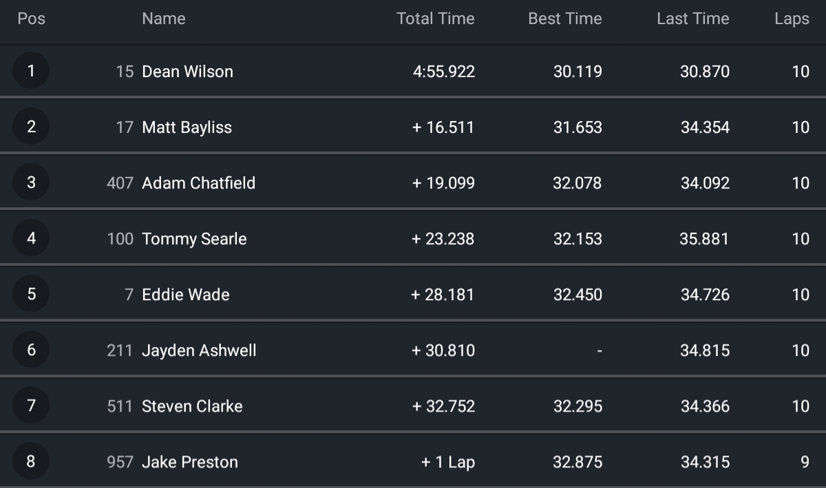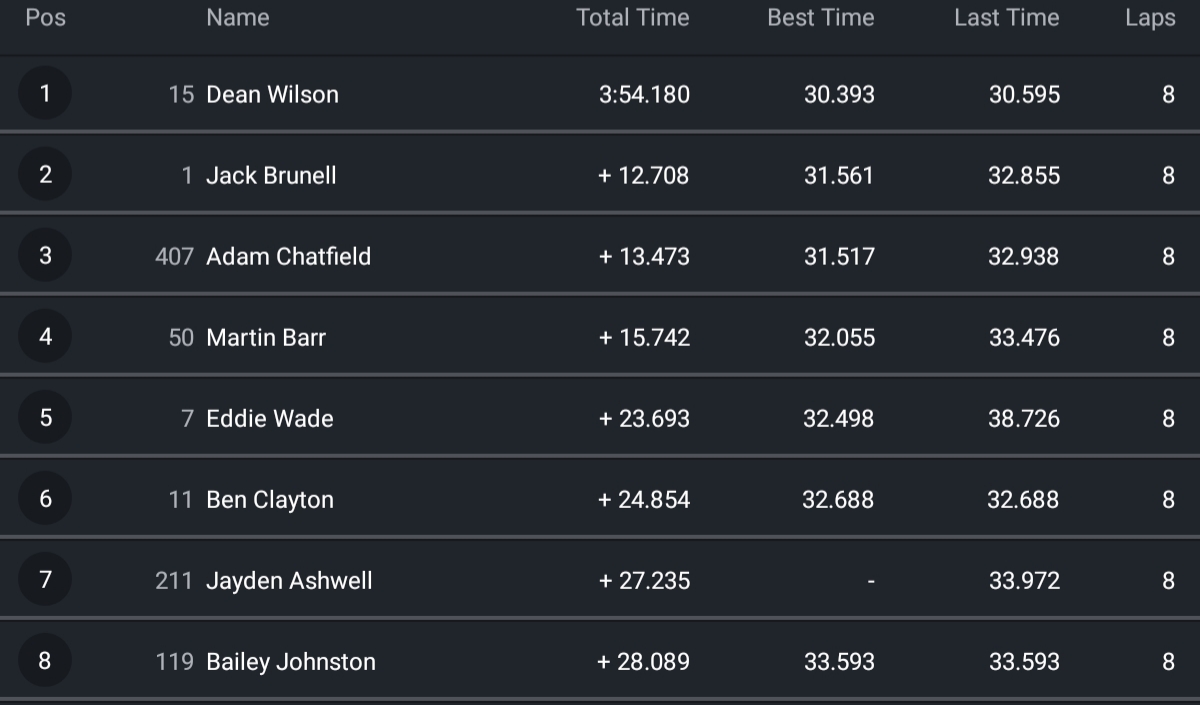 Dean Wilson won at home in Aberdeen over Conrad Mewse. Brunell had a better night for third on the Stark.