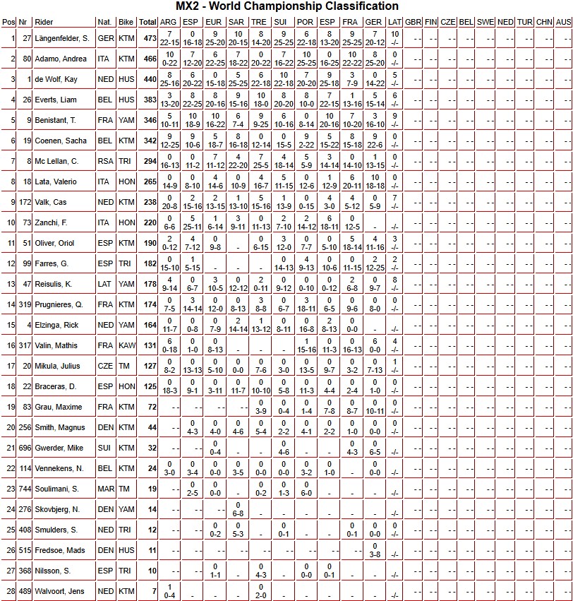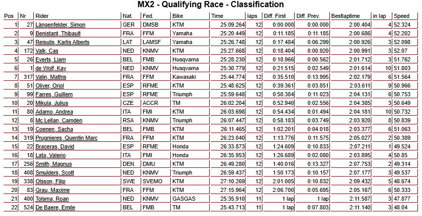 Qualifying race results: MX2 World Championship RD11 – Kegums