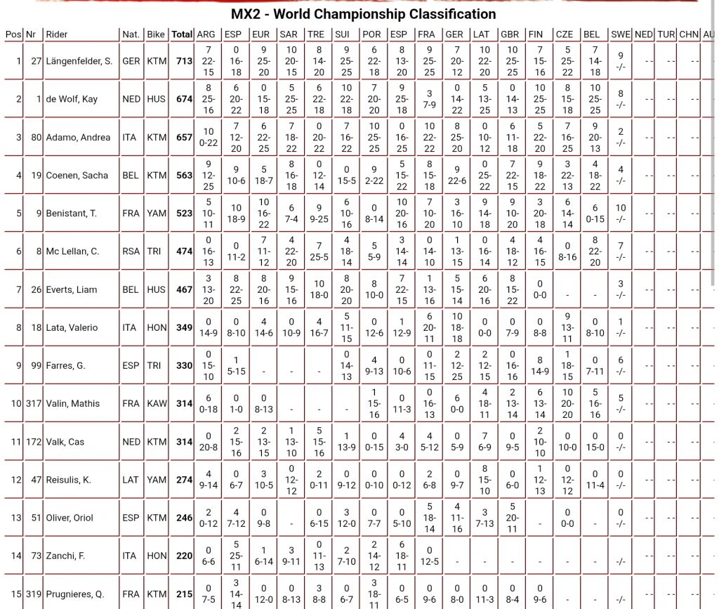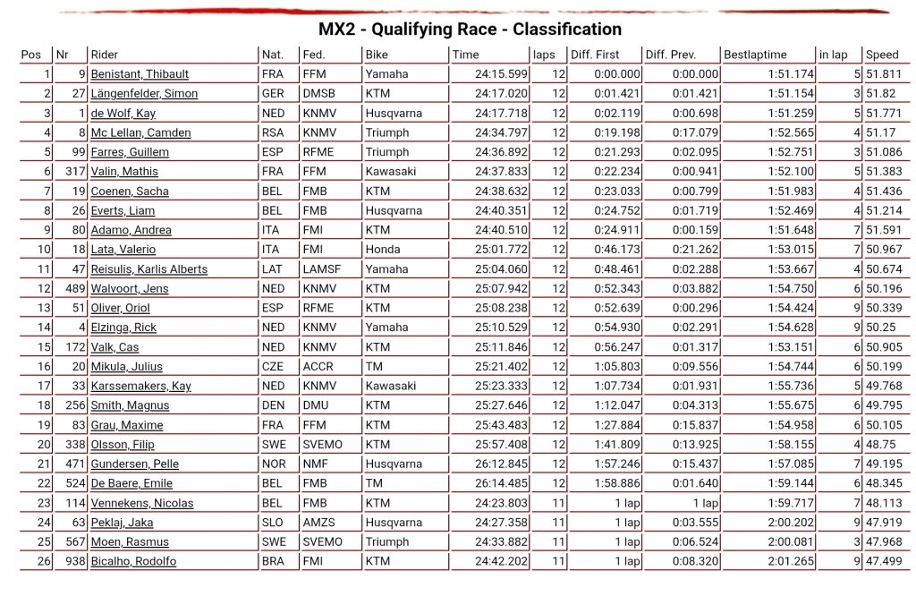 Thinault Benistant had a great ride to hold off a charging Simon Längenfelder and Kay de Wolf to take the win with McLellen getting the better of his teammate Farres for fourth. Everts took eighth on his return.