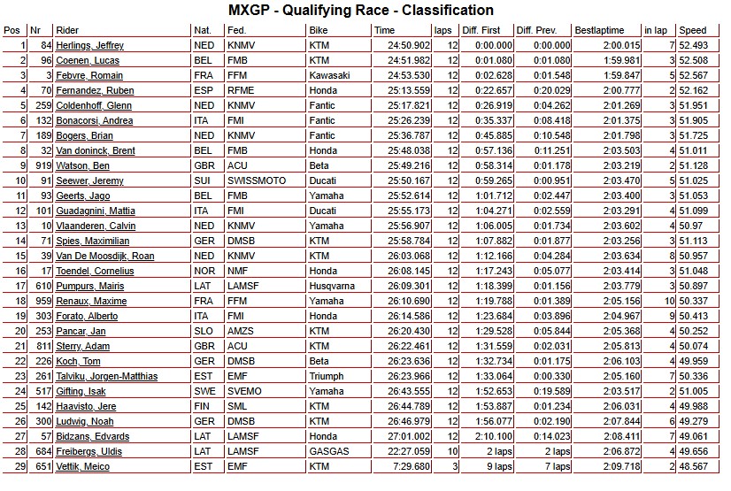 Qualifying race results: MXGP World Championship RD11 – Kegums