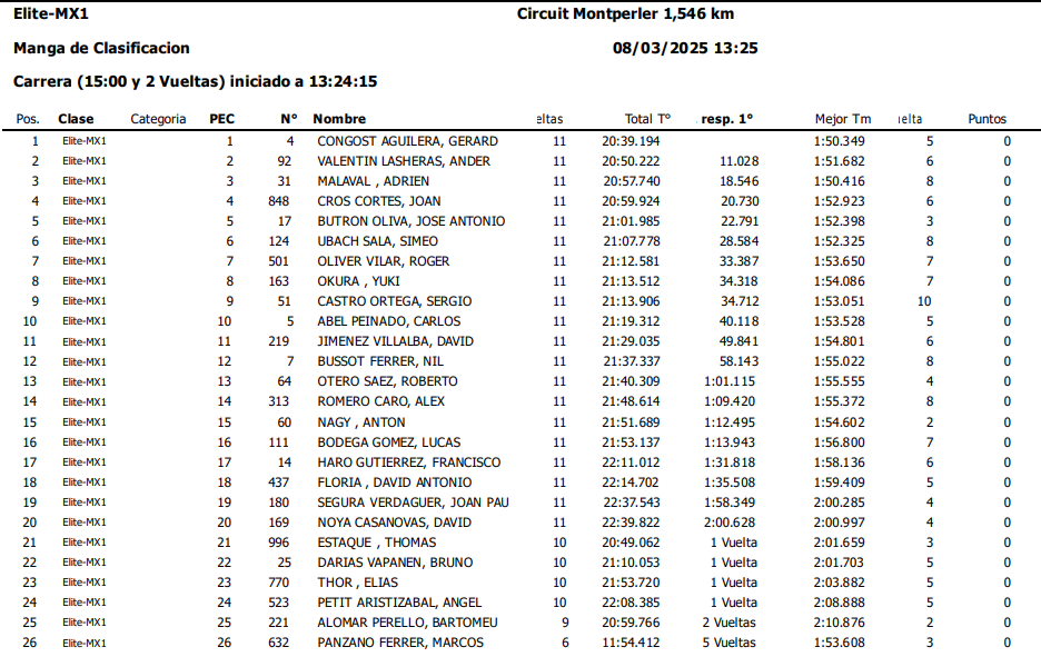 In the qualifying races, it was Gerard Congost who won MX1 ahead of Ander Valentin with French visitor, Adrien Malaval was third.