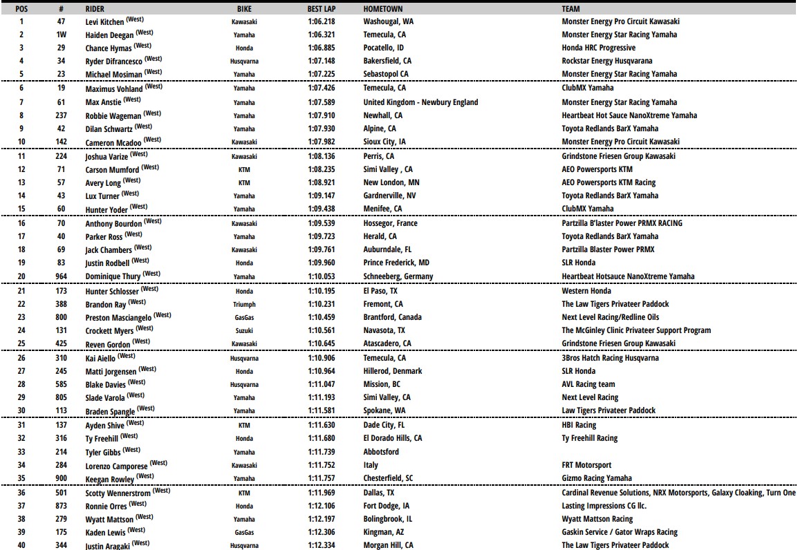 Levi Kitchen is on pole for the first 250SX qualifying of the year edging out Haiden Deegan – he’ll be happy with that!
