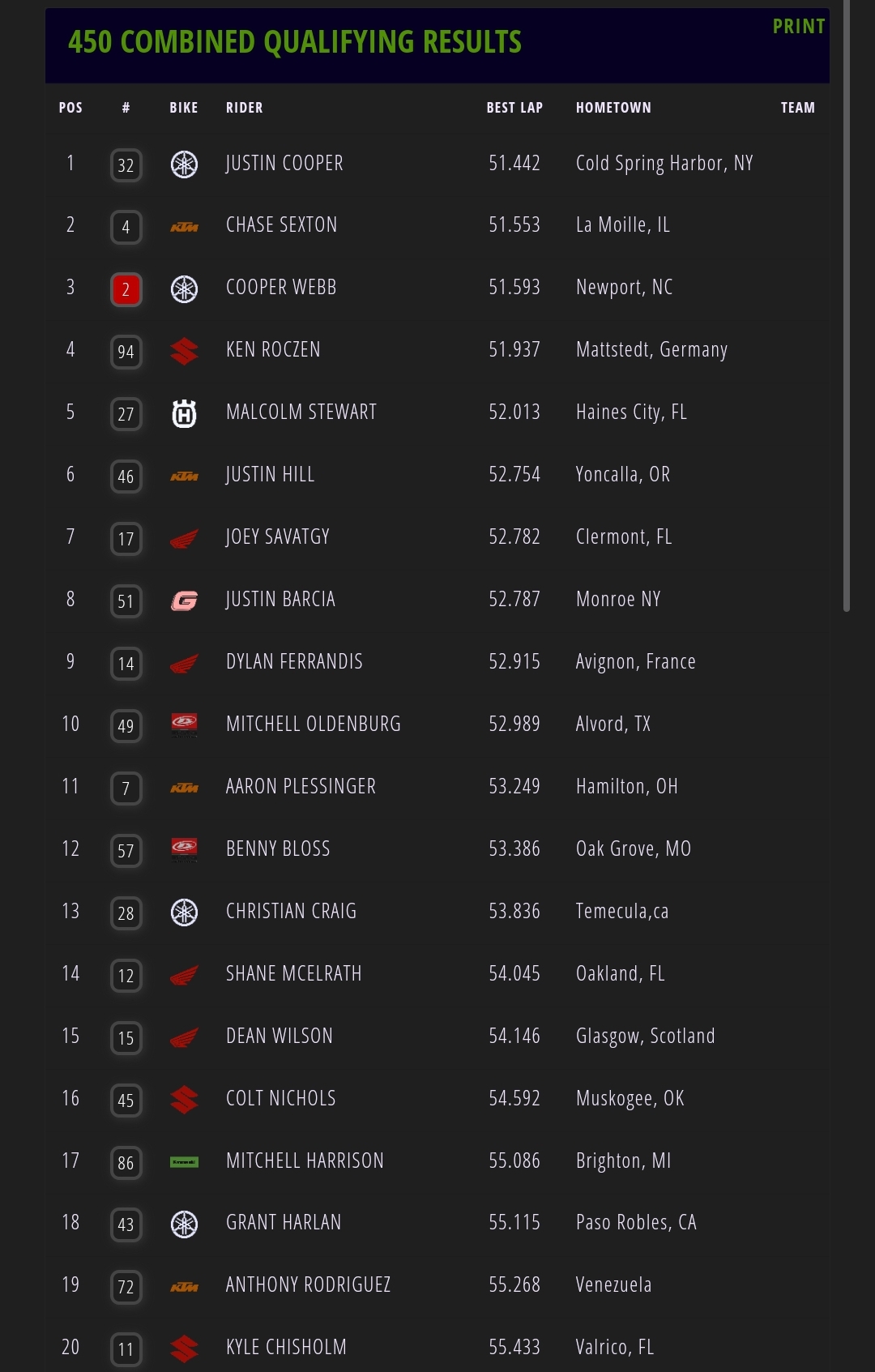 Justin Cooper put himself ahead of the title duo, Webb and Sexton to post the fastest time at his hometown race just one tenth of a second ahead of Sexton and Webb – it’s close!