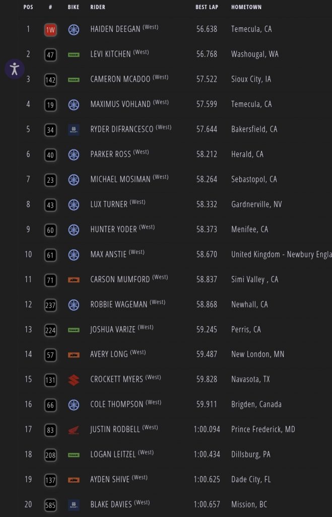 Deegan’s bike subsequently failed sound after Q1 so he lost his fastest lap putting Ryder DiFrancesco quickest.