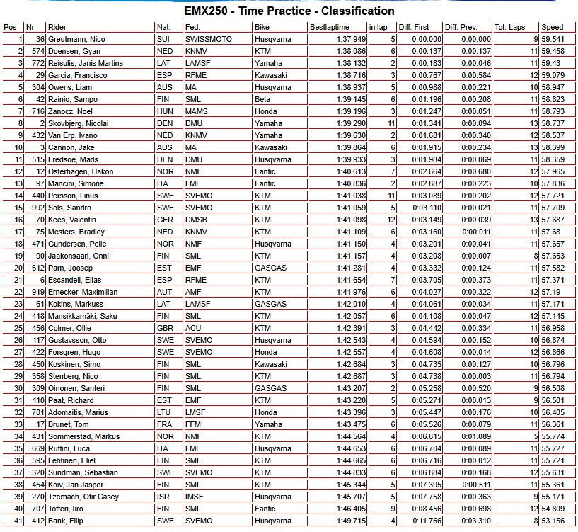 Qualifying results: EMX250 RD10 – Iitti-KymiRing