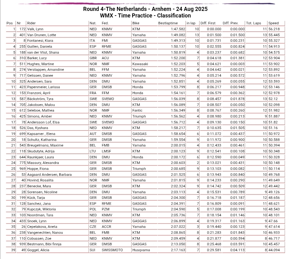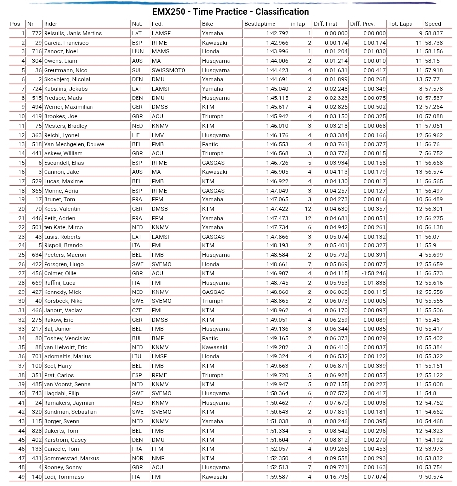 Results: AMA + MXGPQualifying results: EMX250 & WMX – Arnhem Jonathan McCready2 weeks ago2 weeks ago1 mins Facebook Twitter WhatsApp Messenger Email Janis Reisulis and Lynn Valk went fastest in their respective classes at Arnhem. EMX250: WMX: Post navigation Previous: Video: Foxhill VMXDN live!Next: Timed practice results: MX2 + MXGP RD17 – Arnhem