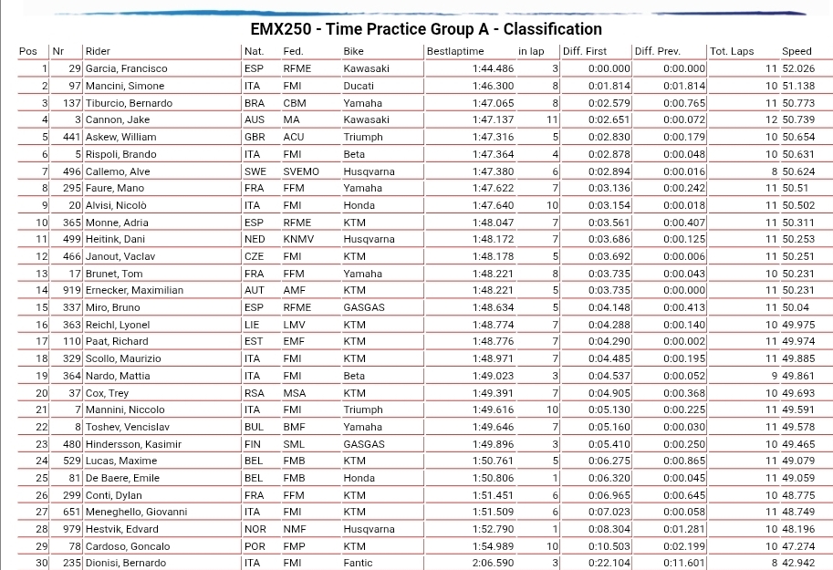 EMX250 Group A: Garcia and Katona went quickest in timed qualifying in a stacked EMX250 class with Billy Askew ffith in group A and Joe Brookes fifth in group B!