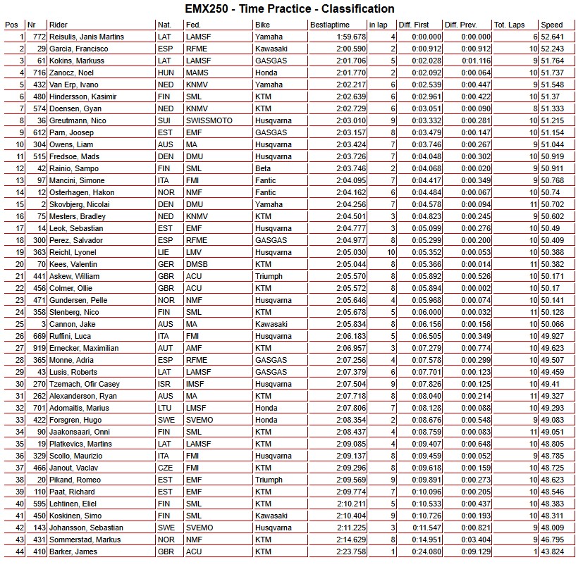 Janis Reisulis put in pole time at Kegums in the EMX250 championship ahead of Spanish talent, Francisco Garcia.
