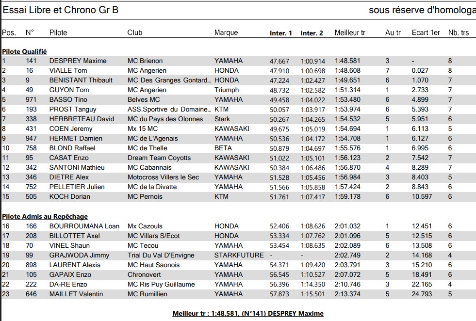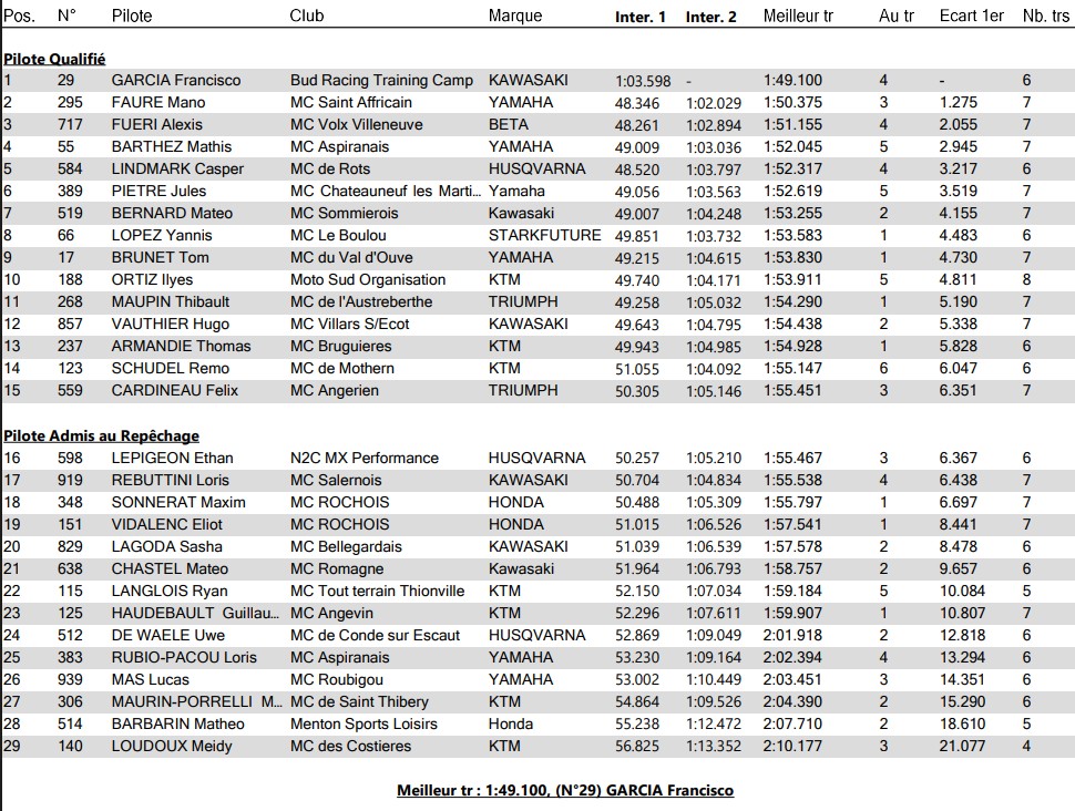 In MX1, Calvin Fonvieille and Maxime Desprey topped the sessions. Desprey was faster than MXGP men, Tom Vialle and Thibault Benistant.