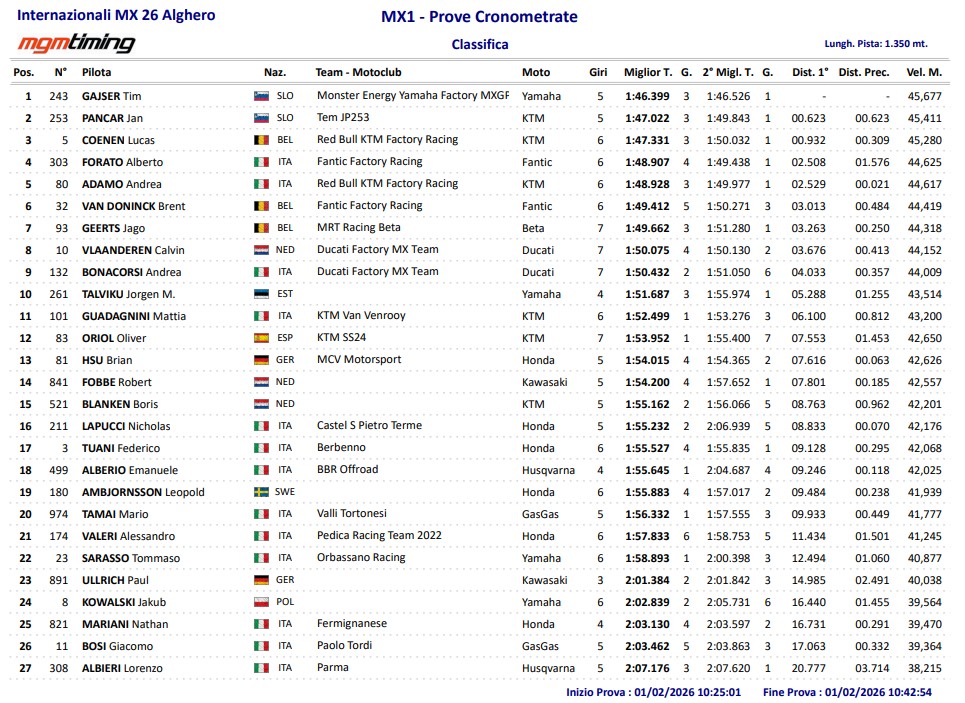 Alberto Forato looks to be enjoying his Fantic as he was fourth fastest with Andrea Adamo rounding out the top five.