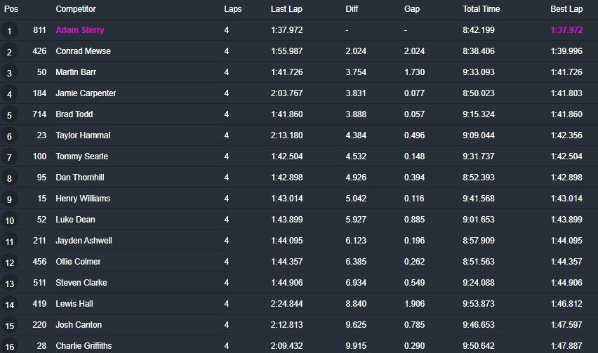 Jamie Carpenter was fourth fastest with Brad Todd rounding out the top five.