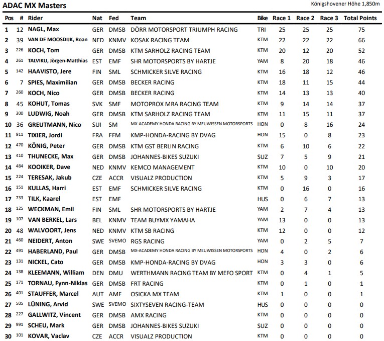 Max Nagl won all three races to take the overall at the season opener. He might be 38 years old but he can still ride a bike!