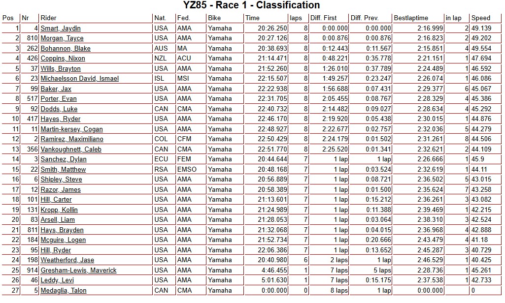 Race results: BluCru 125, 85 + 65 – Ironman MXoN