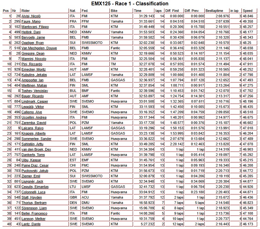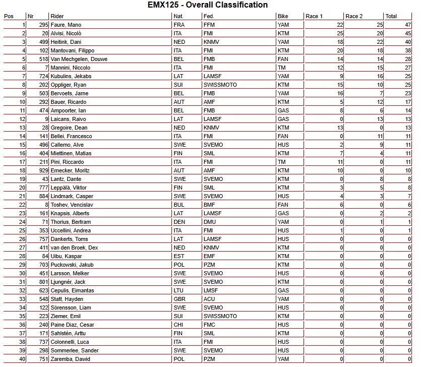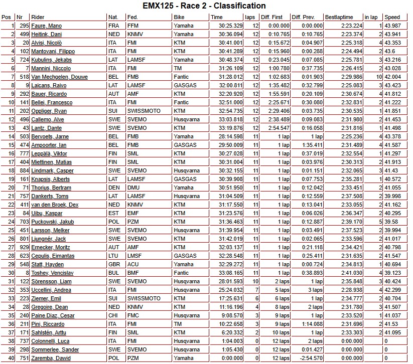 Race results: EMX125 RD9 – Kegums – Faure wins
