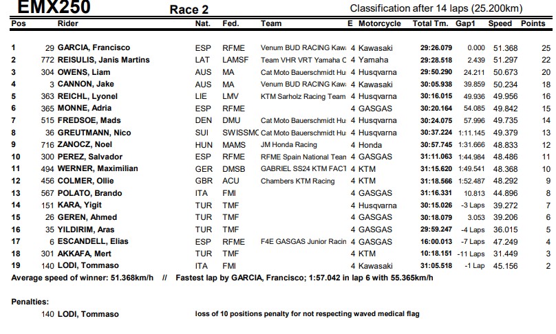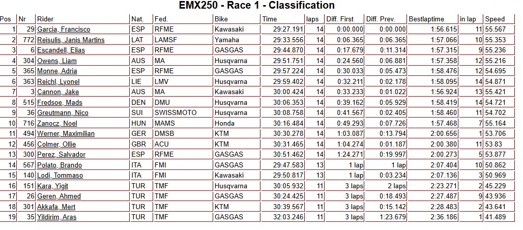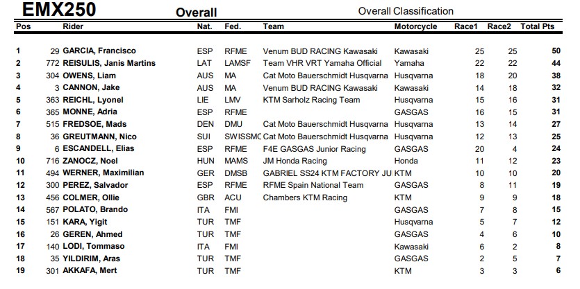 Race One: It was Max Werner who grabbed the holeshot on his SS24 KTM machine and he led for the first couple of laps. However, Francisco Garcia didn’t waste much time to get to the front after passing Reisulis and Garcia. The Spaniard then never looked back.