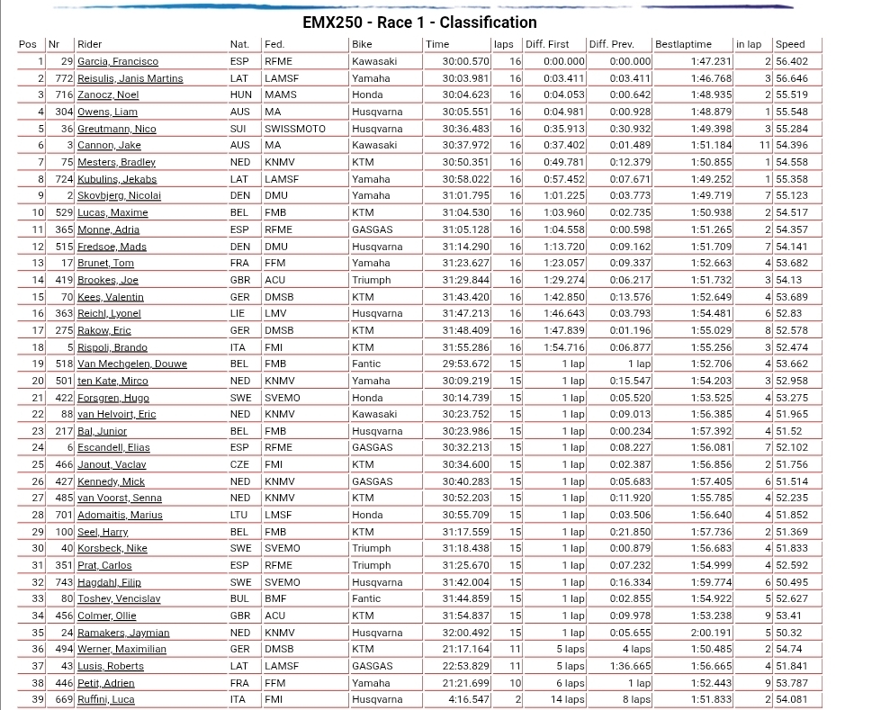 Race One: Janis Reisulis led for a long time but Francisco Garcia ran him down to take the win, making the pass with a couple of laps to go as Zanocz took fifth.