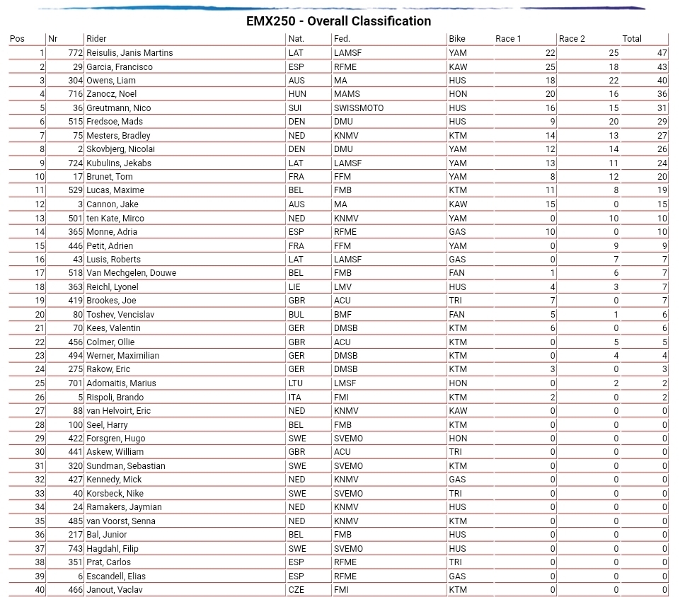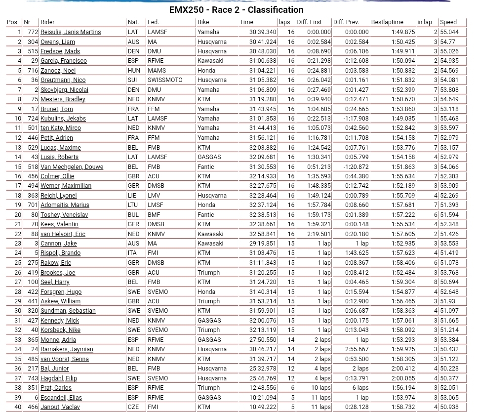 Race Two: Janis Reisulis ran away with race two from Liam Owens and Fredsoe with Garcia fourth after crashing while second Zanocz could