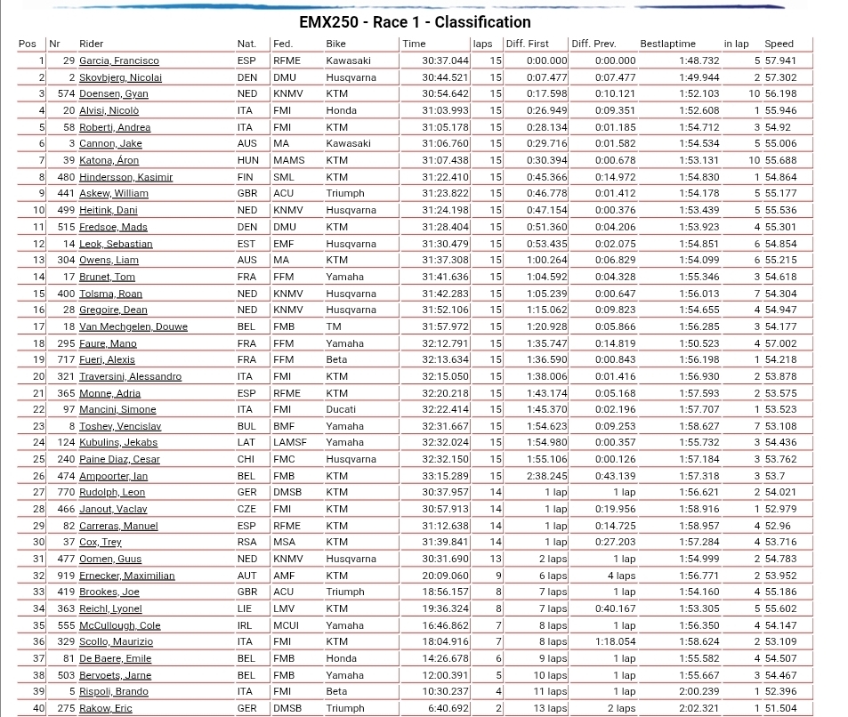 Race One: Francisco Garcia took the win despite a crash after catching race leader, Mano Faure, but Faure then crashed three times, two of those offs were spectacular but somehow he wasn’t injured!