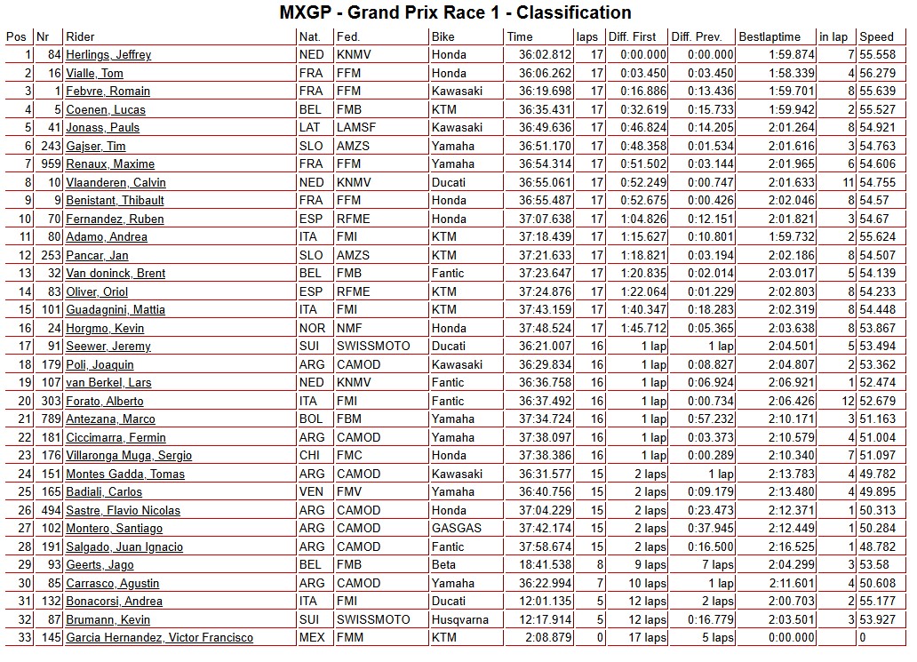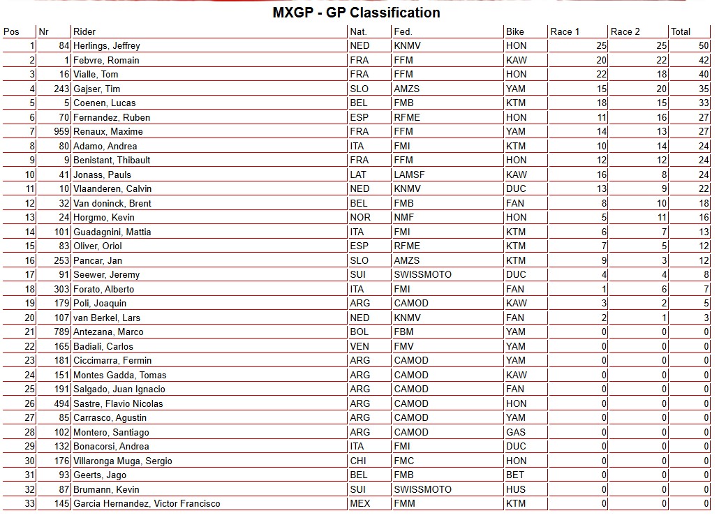 Race results: MXGP World Championship RD1 – Bariloche – Herlings does the double