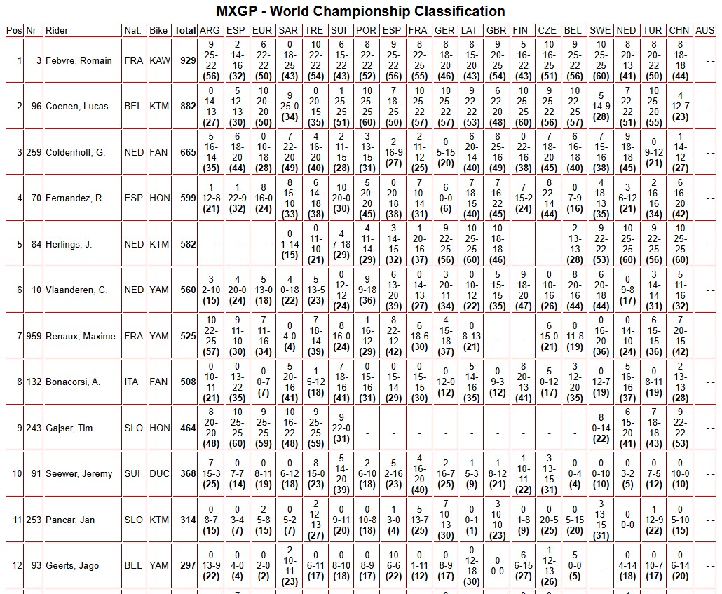 Fernandez made a pass on Febvre to secure third overall but Coenen could only get back to fourteenth so the championship gap is now 47 points with one to go.