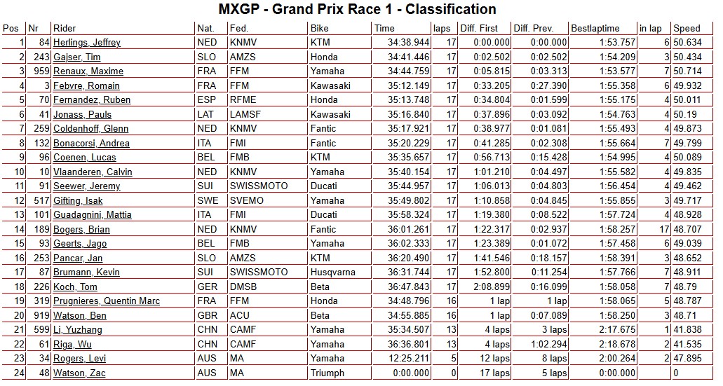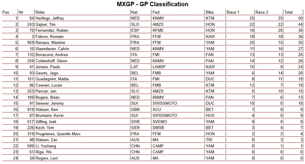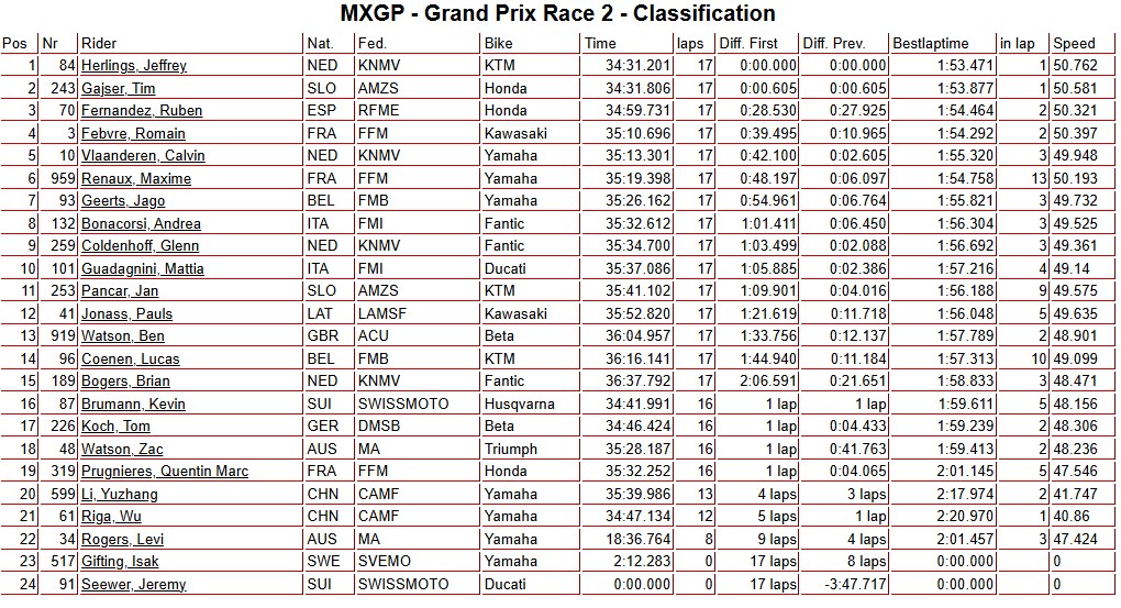 Gajser applied the pressure and there wasn’t much in it but Herlings held on to take his 112th GP victory.