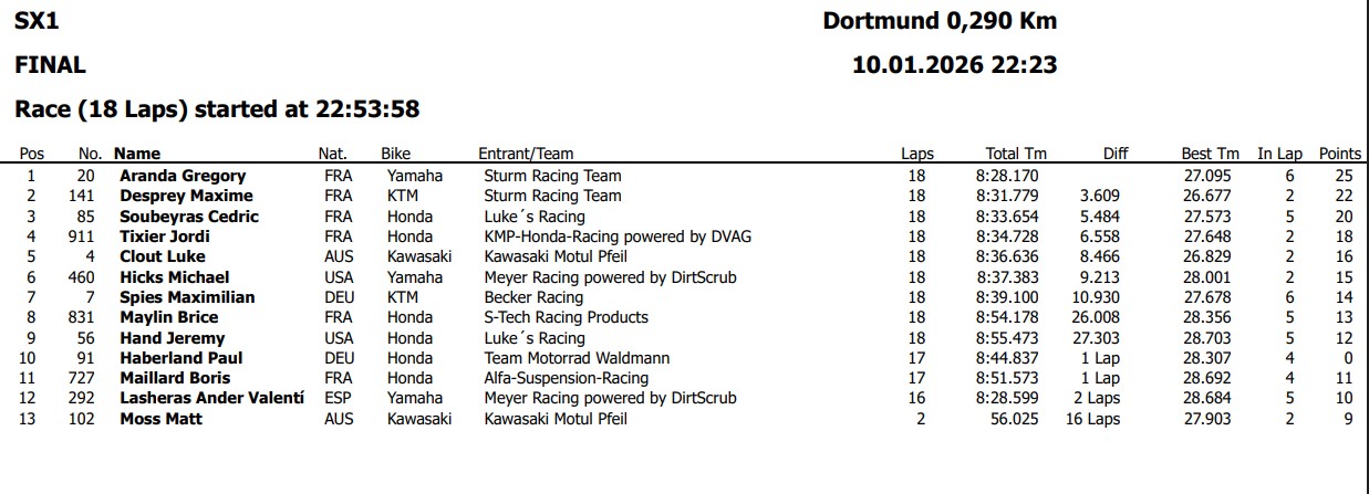 During the second night of action in Dortmund, it was Greg Aranda who brought home the win edging out Maxime Desprey after the latter won the opening night.