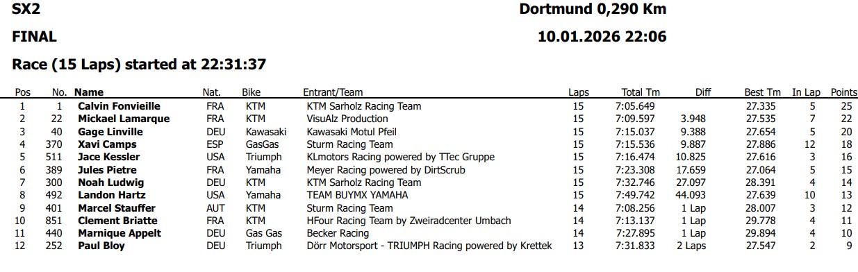 In SX2, Calvin Fonvieille took the win with Mickael Lamarque impressing in second.